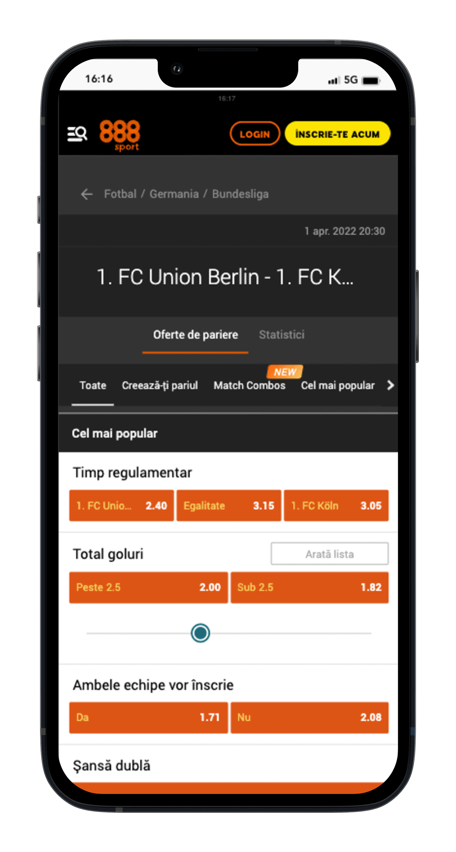 Da! Este unul dintre cele mai bune bonusuri de pe piața din România. Dacă revendici oferta de înscriere 888sport, primești 100% până la 600 lei plus 60 FS - exclusiv la Pariurisport.com.