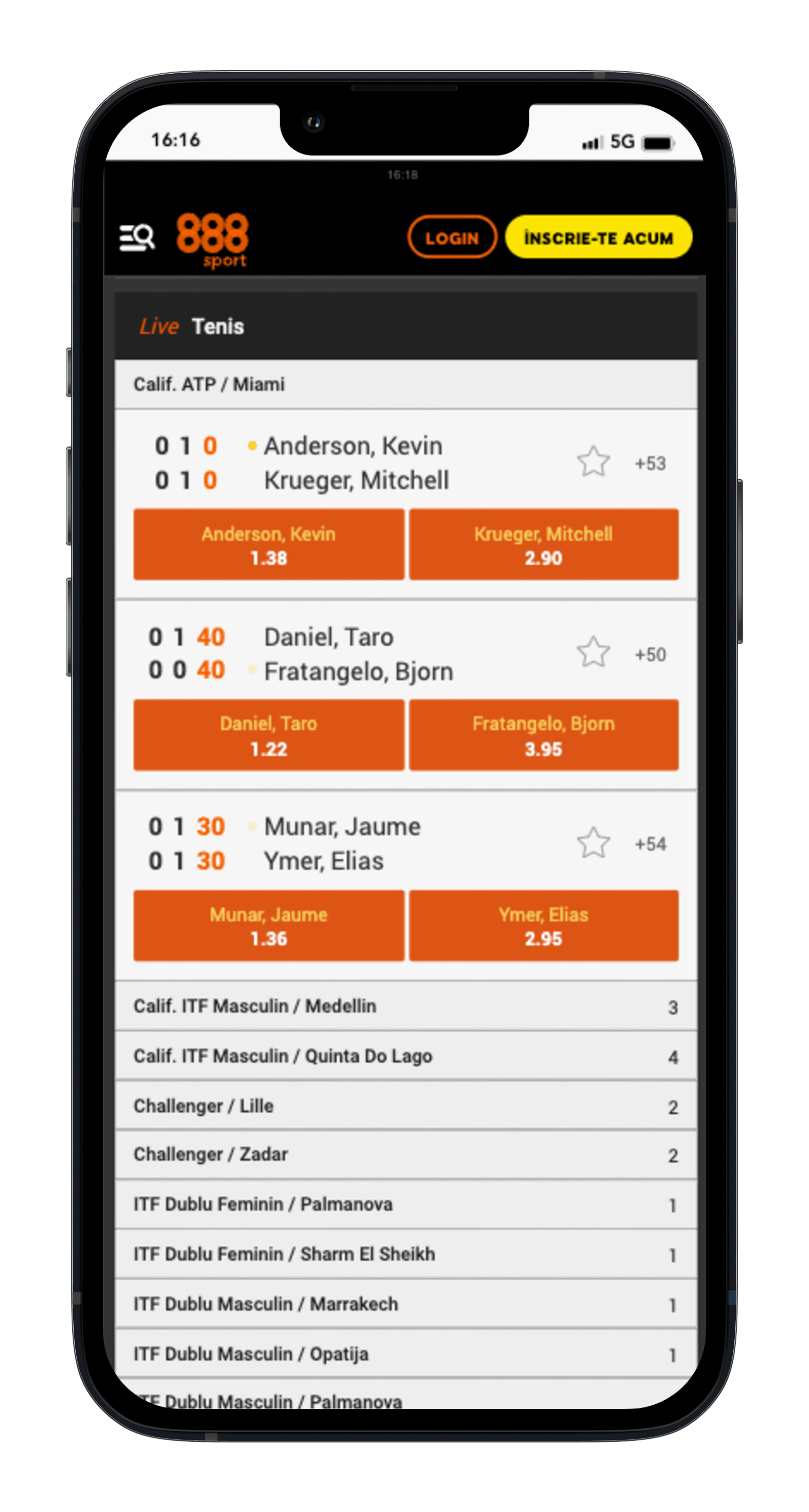 Cu aplicația 888sport poți folosi cu adevărat casa de pariuri a site-ului pe telefonul tău mobil. Cu același profil grafic și instrumente de navigare, toate funcțiile sunt ușor de utilizat.