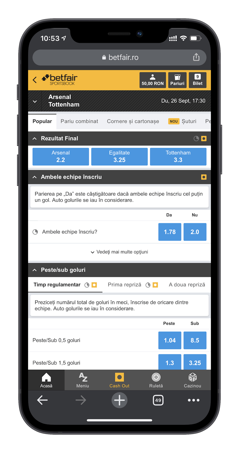 Funcția Betfair cash out duce la descalificarea pariului pentru bonusul de bun venit.