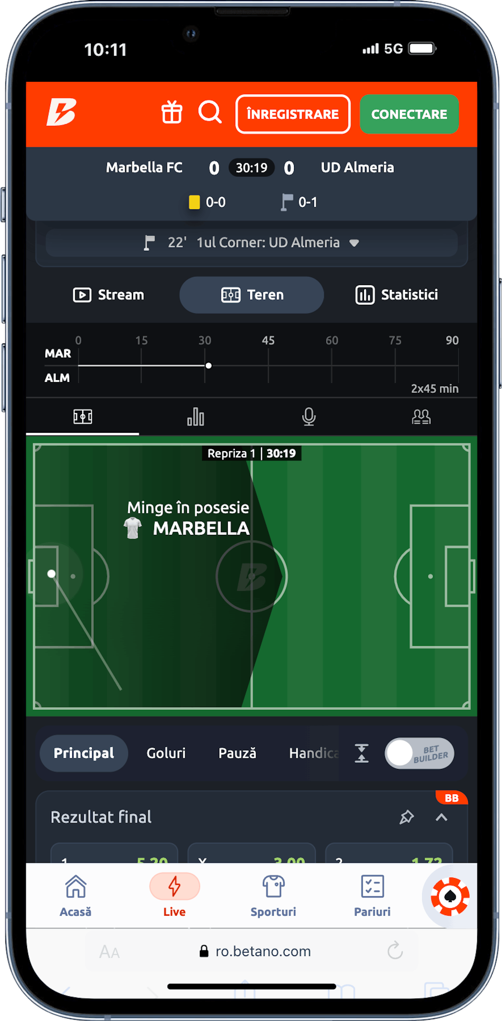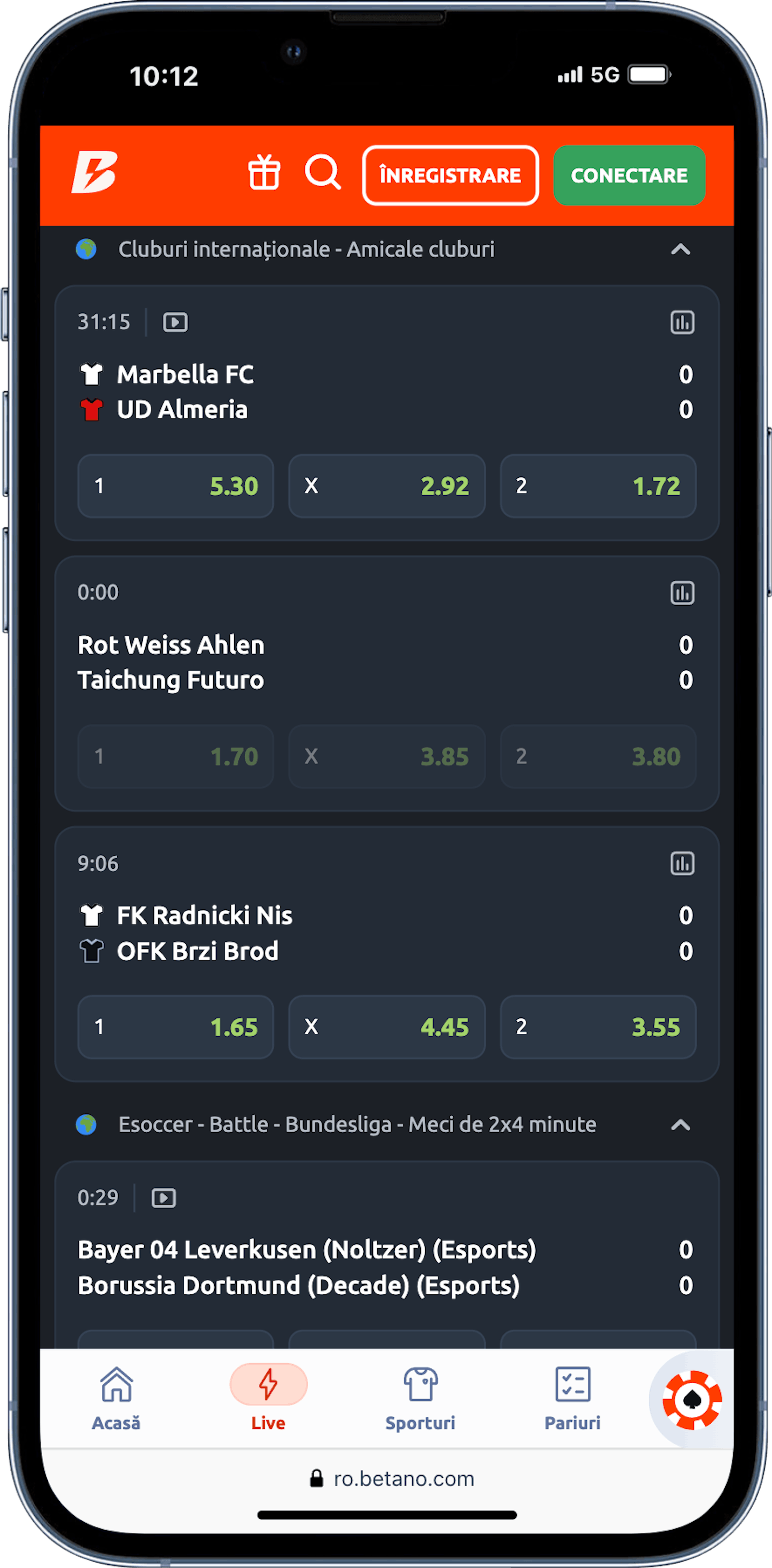 Funcționalitatea de pariuri live este mai valoroasă pentru că Betano are și propriul serviciu de transmisiuni în direct.