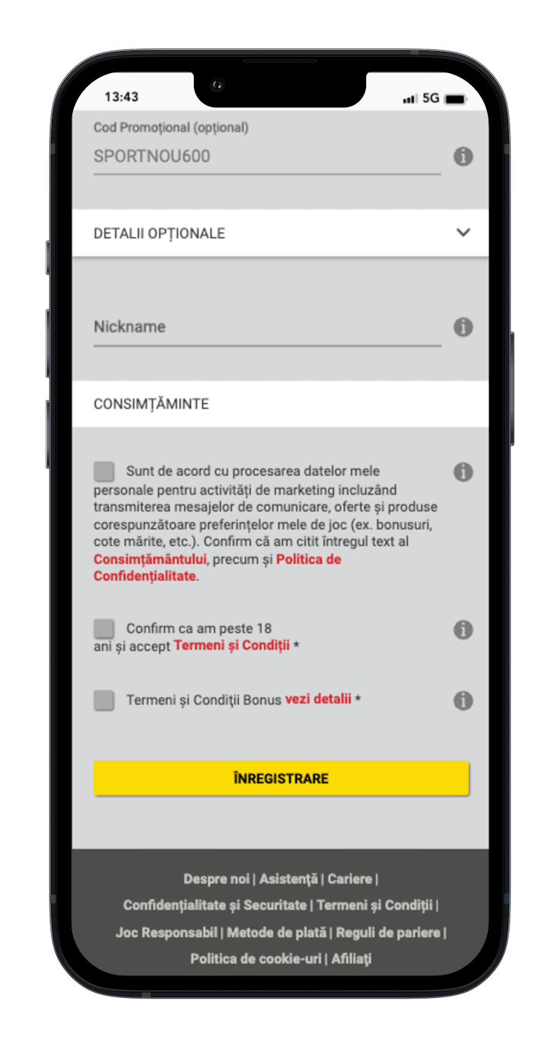 → Poți revendica oferta de bun venit la finalul procesului de înregistrare