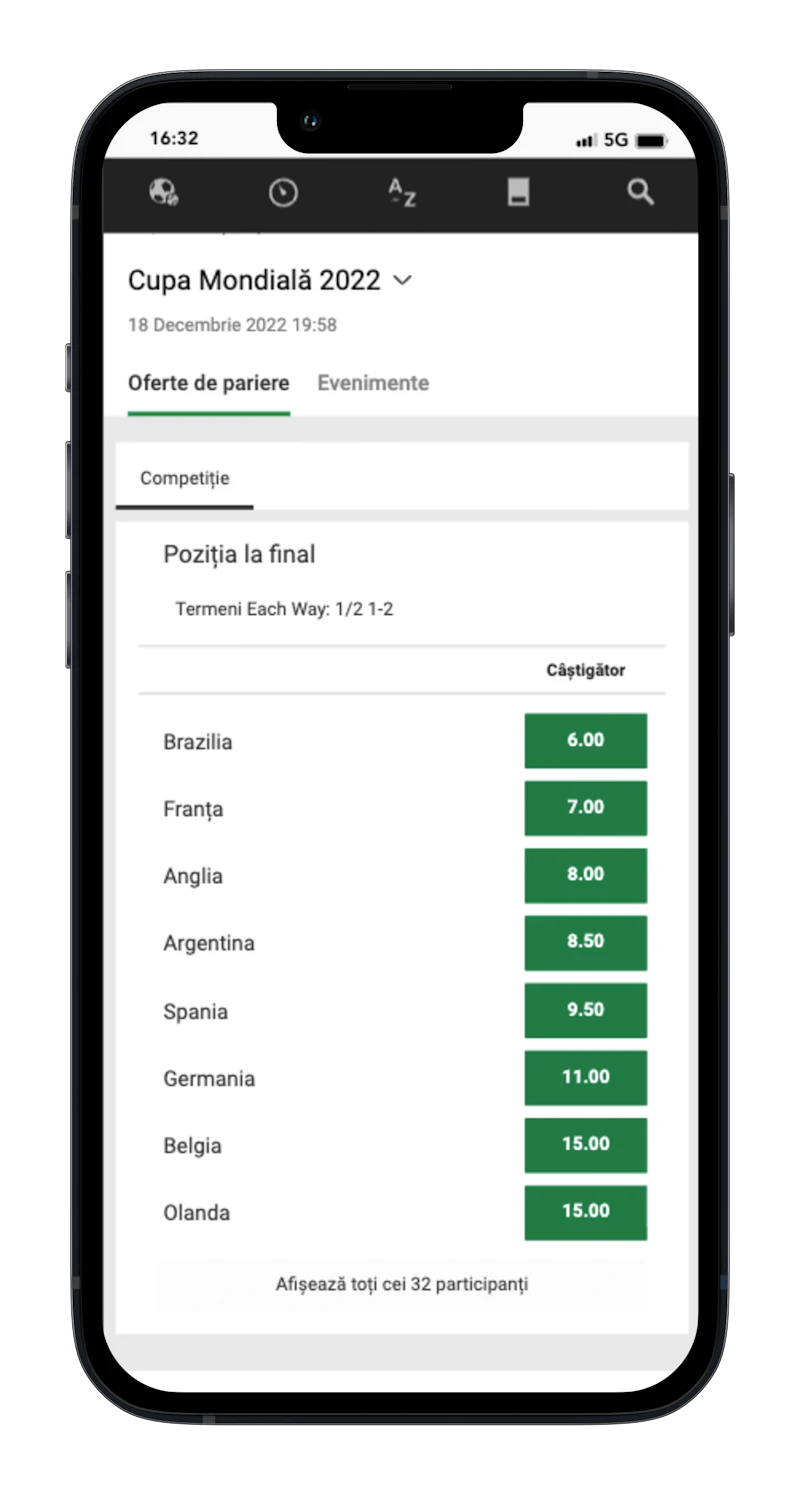 Descoperă detalii despre turneu, cote câștigătoare Cupa Mondială și multe altele.
